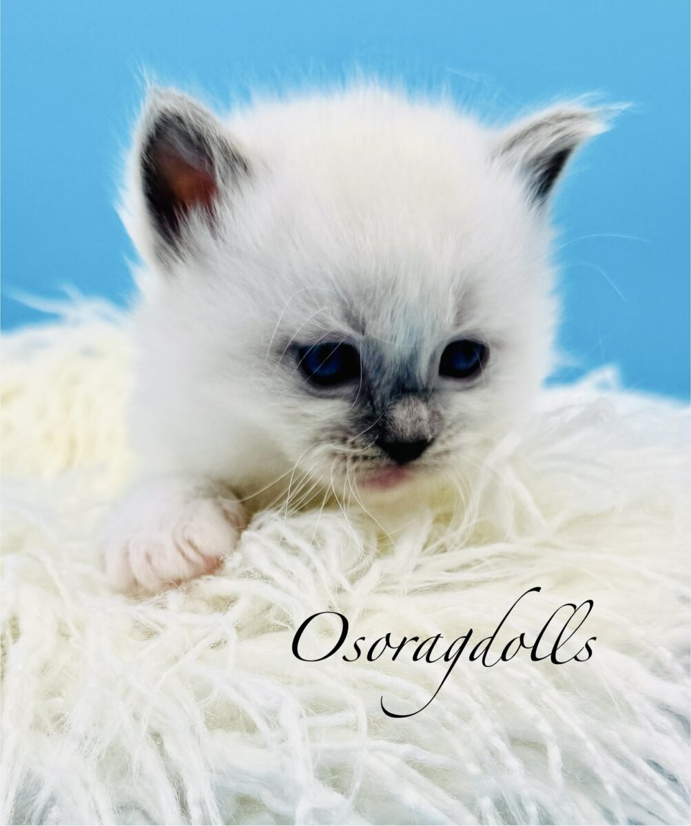 AVAILABLE as of 1/20/2026: Ragdoll kitten, Blue Point Mitted, male. TICA Registered. Gentle, loving, and super sweet. He'd do well in a home with other pets, children, and seniors. He is super easy going, and quite affectionate.